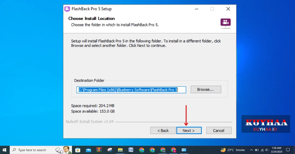 Pilih folder instalasi, lalu klik Berikutnya; disarankan untuk memilih folder default.