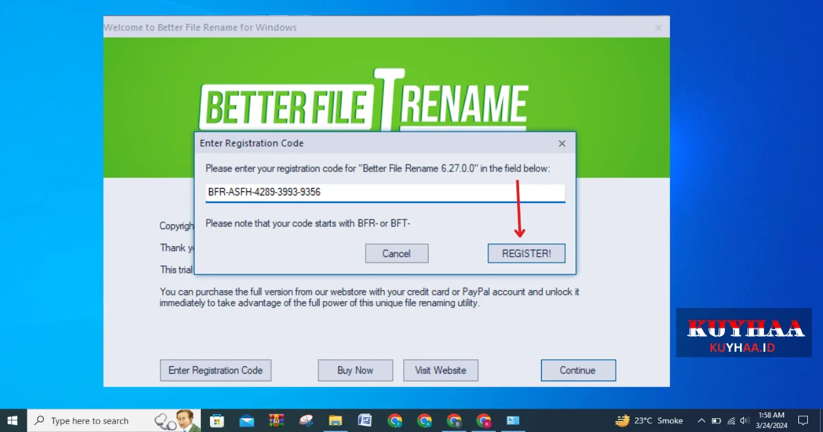 Setelah itu, tempelkan kunci yang telah disalin ke dalam kotak registrasi, dan akhirnya, klik “Register.”